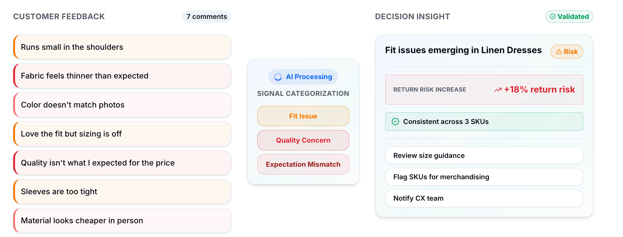 - Which products require clearer imagery, copy, or sizing guidance